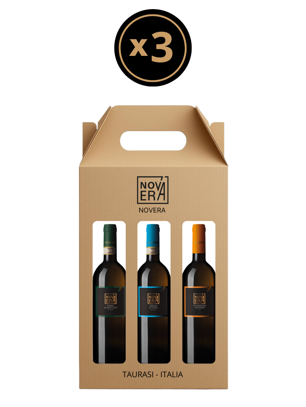La box comprende 3 bottiglie (750 ml), una per ciascuna tipologia, pensata per chi desidera scoprire e confrontare le diverse sfumature dei vitigni bianchi più rappresentativi della Campania.